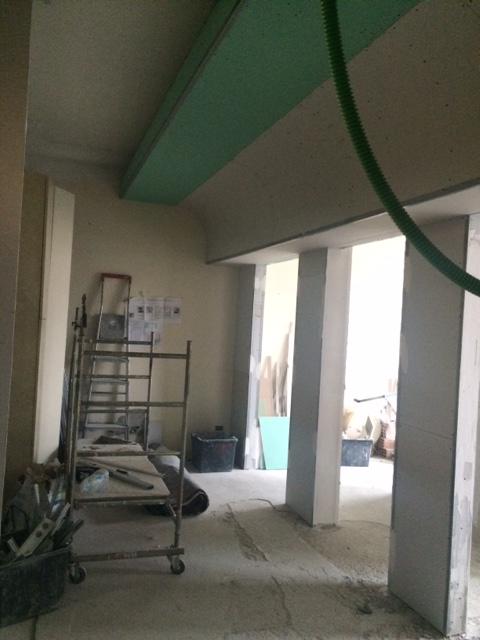 Aiuto, mi stanno dipingendo di celeste il centro estetico! Chi ha scelto questo colore, che non era previsto? Anche i tubi sono celesti! Beh, senz'altro ci sarà una spiegazione. Aspettiamo domani e vediamo.