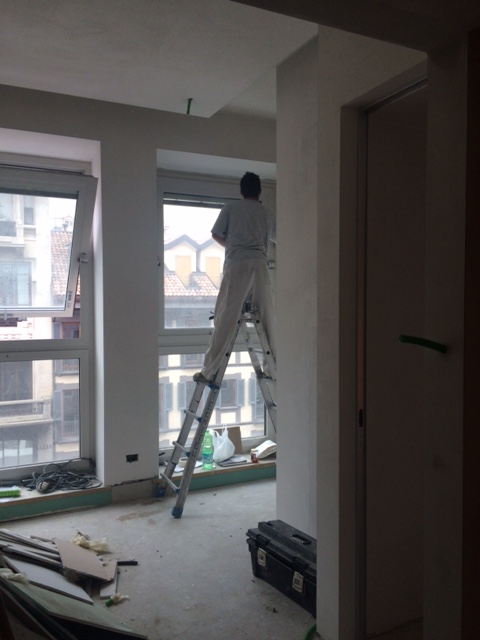Imbianchino, per favore... sì dico a lei sulla scala... Sta facendo un ottimo lavoro, ma... per favore... faccia presto.... Milano ci aspetta!