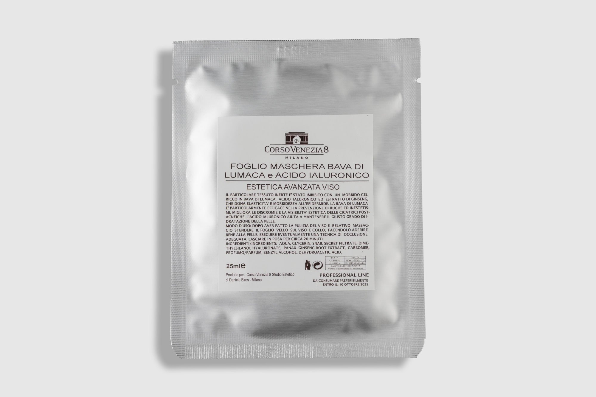 Maschera cosmetica che aiuta a migliorare tono ed elasticità della pelle, favorendo un aspetto più compatto e luminoso.