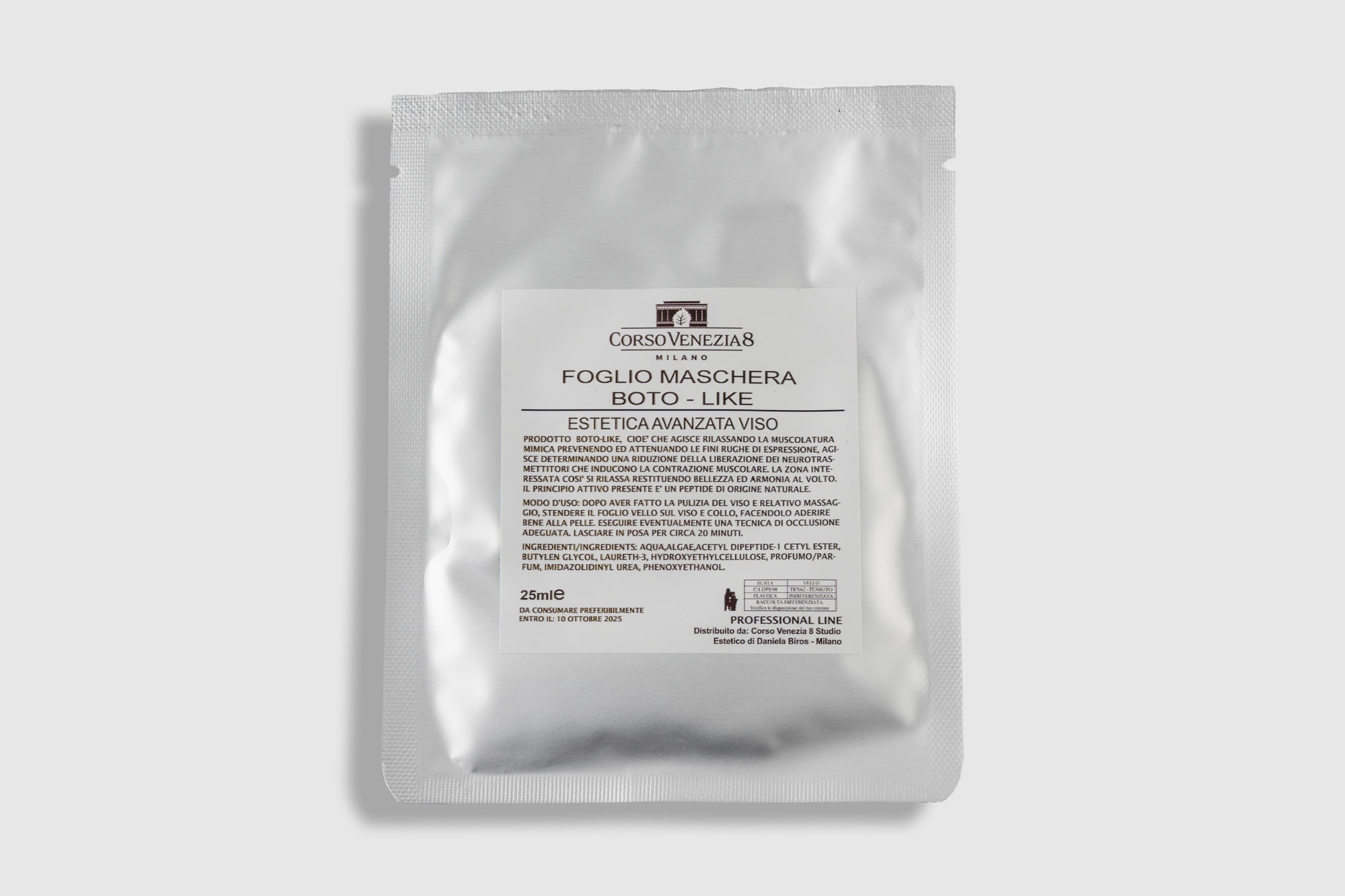Maschera cosmetica che aiuta a migliorare l’aspetto delle rughe, favorendo una pelle più liscia, luminosa e compatta.